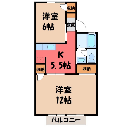 間取 / 専有面積 2K / 48.17m2 間取り詳細 K5.5/洋室12/洋室6 築年月 1986年3月築