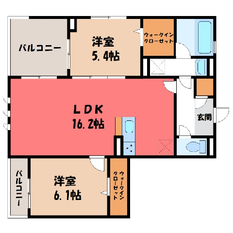 間取 / 専有面積 2LDK(S) / 63.92m2 間取り詳細 LDK16.2/洋室5.4/洋室6.1 築年月 2023年7月築
