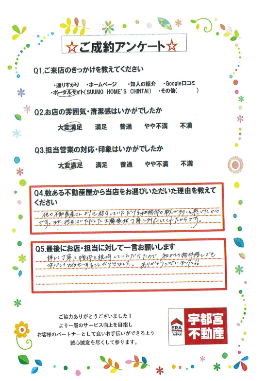 詳しく丁寧に物件を説明していただけたので、初めてのお部屋探しでも安心してお任せすることができました。