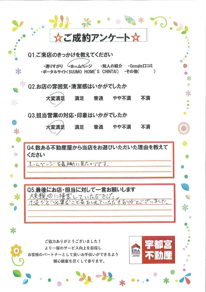 この度は宇都宮不動産本店をご利用いただきありがとうございました。