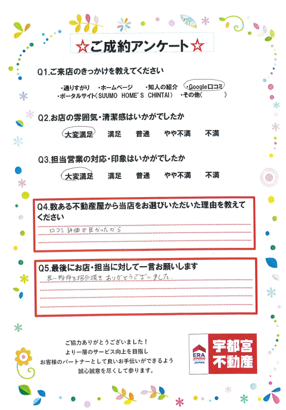 この度は弊社宇都宮不動産本店をご利用いただきありがとうございます。
