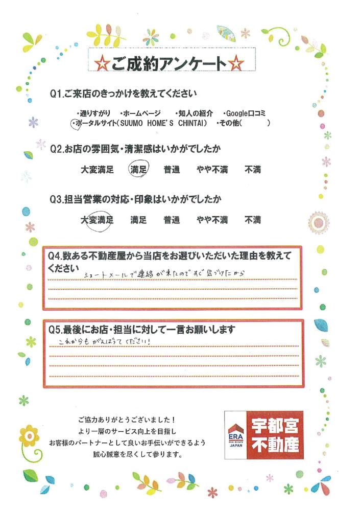 この度は宇都宮不動産本店をご利用いただきありがとうございました。